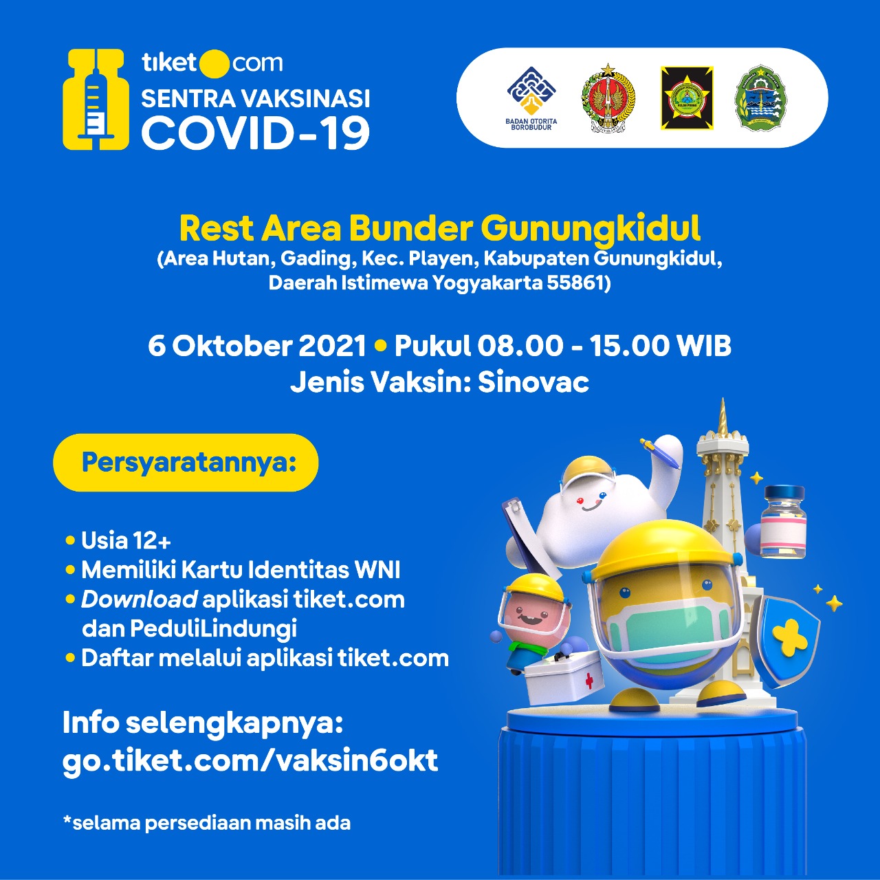 Halo BOBers Gunungkidul dan sekitarnya! Akan hadir vaksinasi gratis tgl 6 Oktober 2021.