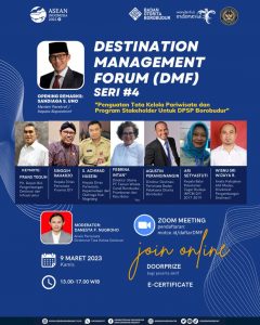 Kemenparekraf/Baparekraf melalui Deputi Bidang Pengembangan Destinasi dan Infrastruktur beserta dengan Badan Pelaksana Otorita Borobudur akan mengadakan Destination Management Forum (DMF) Seri #4.