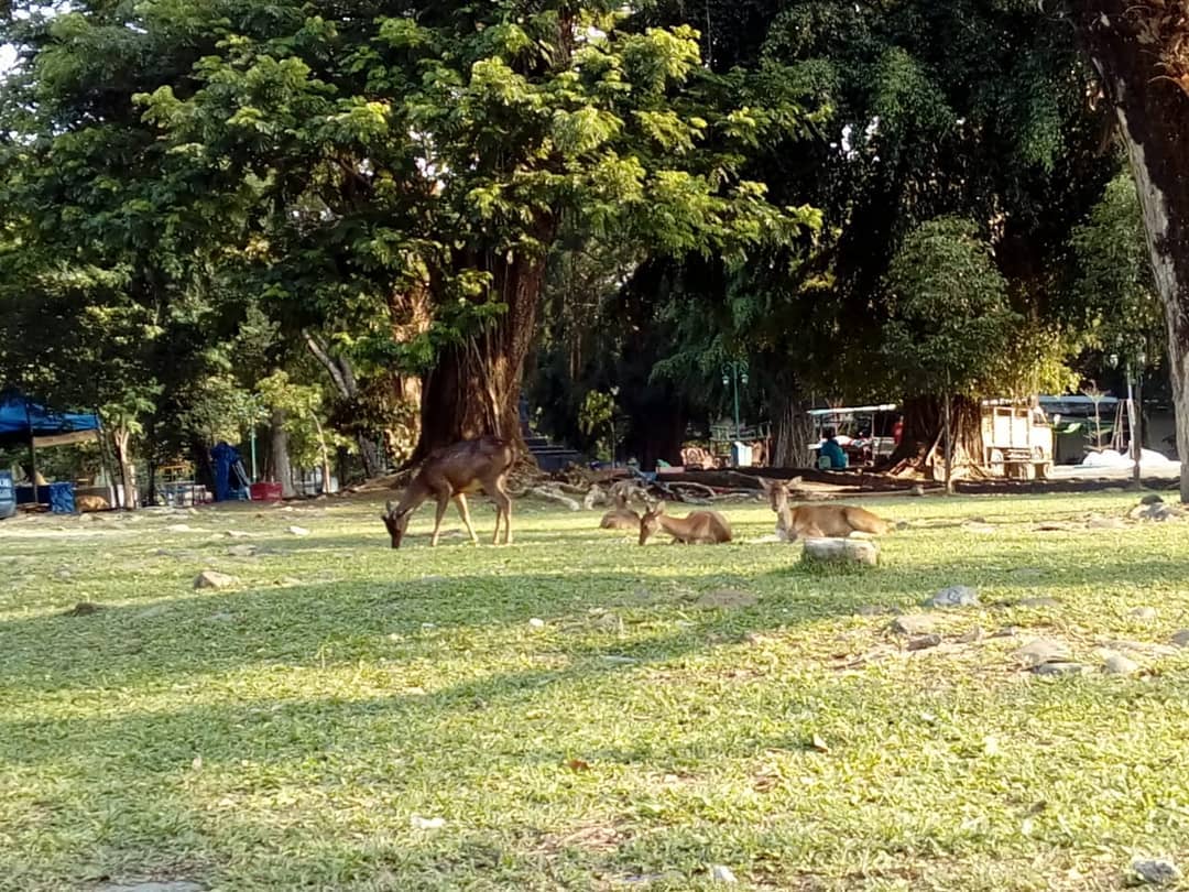 Wisata alam hijau terbuka ini juga ditumbuhi oleh berbagai macam jenis pohon yang sangat rindang, bahkan ada yang tergolong telah langka dan berusia hingga ratusan tahun. Suasana semakin menyenangkan, dengan adanya kumpulan rusa yang berkeliaran di dalam area taman tersebut.