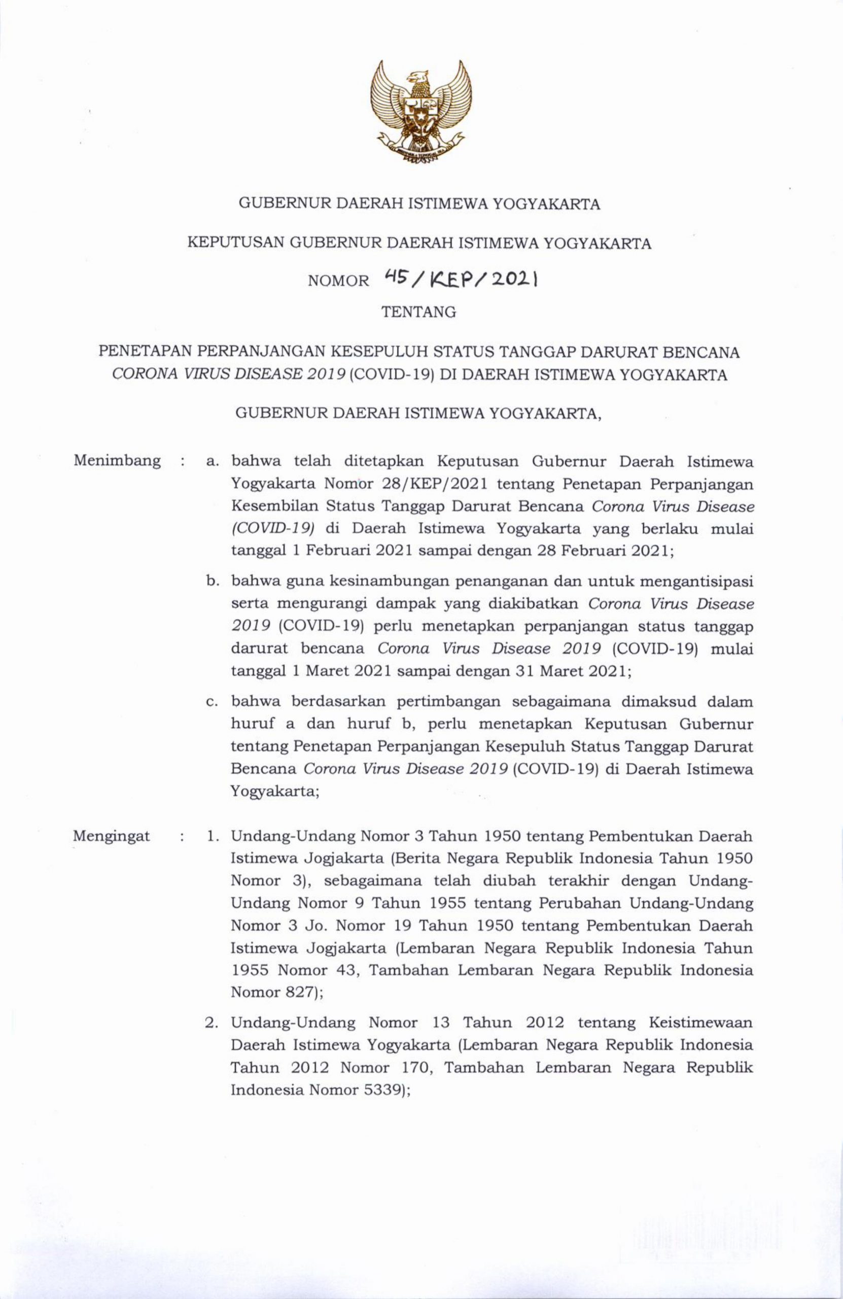 Kebijakan ini sesuai dengan Keputusan Gubernur DIy no: 45/KEP/2021.