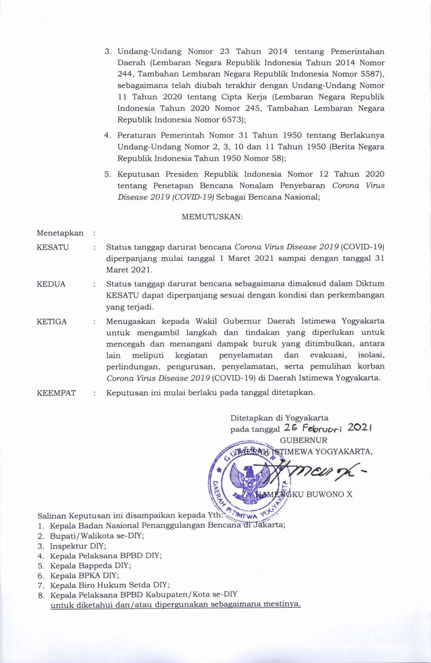 Perpanjangan Status Tanggap Darurat bencana COVID-19,