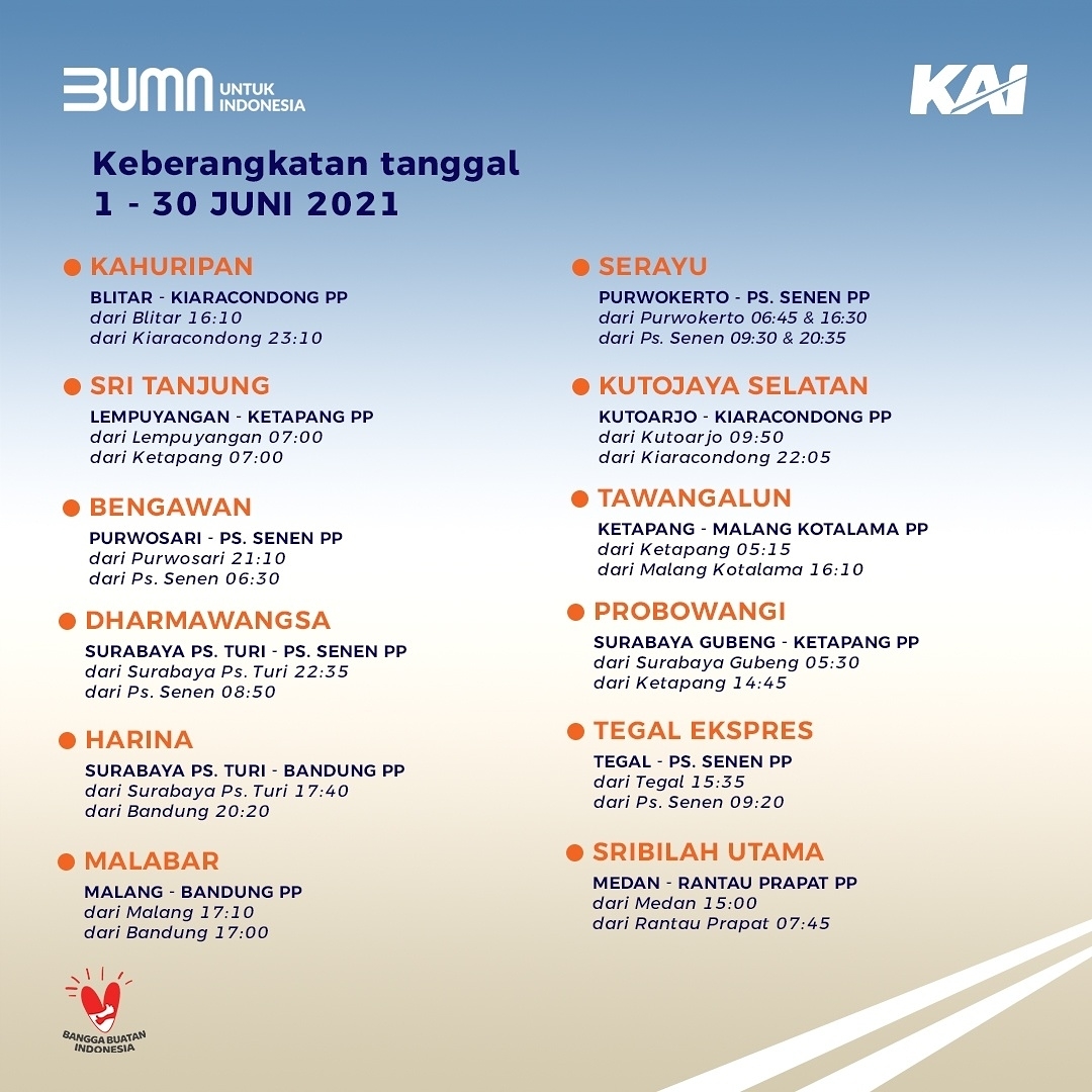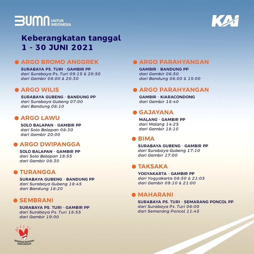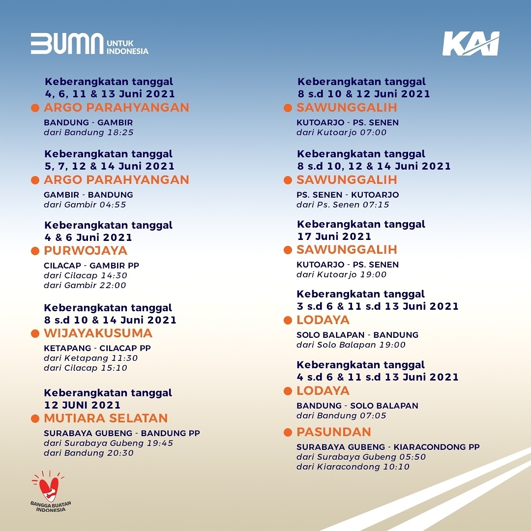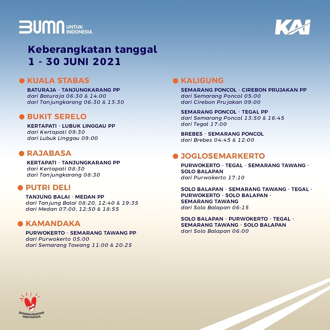 Jangan lupa, untuk pemesanan tiket dan pengecekan jadwal kereta api terupdate, melalui aplikasi KAI Access, kai.id, WA KAI121 (08111-2111-121) atau mitra resmi KAI.
