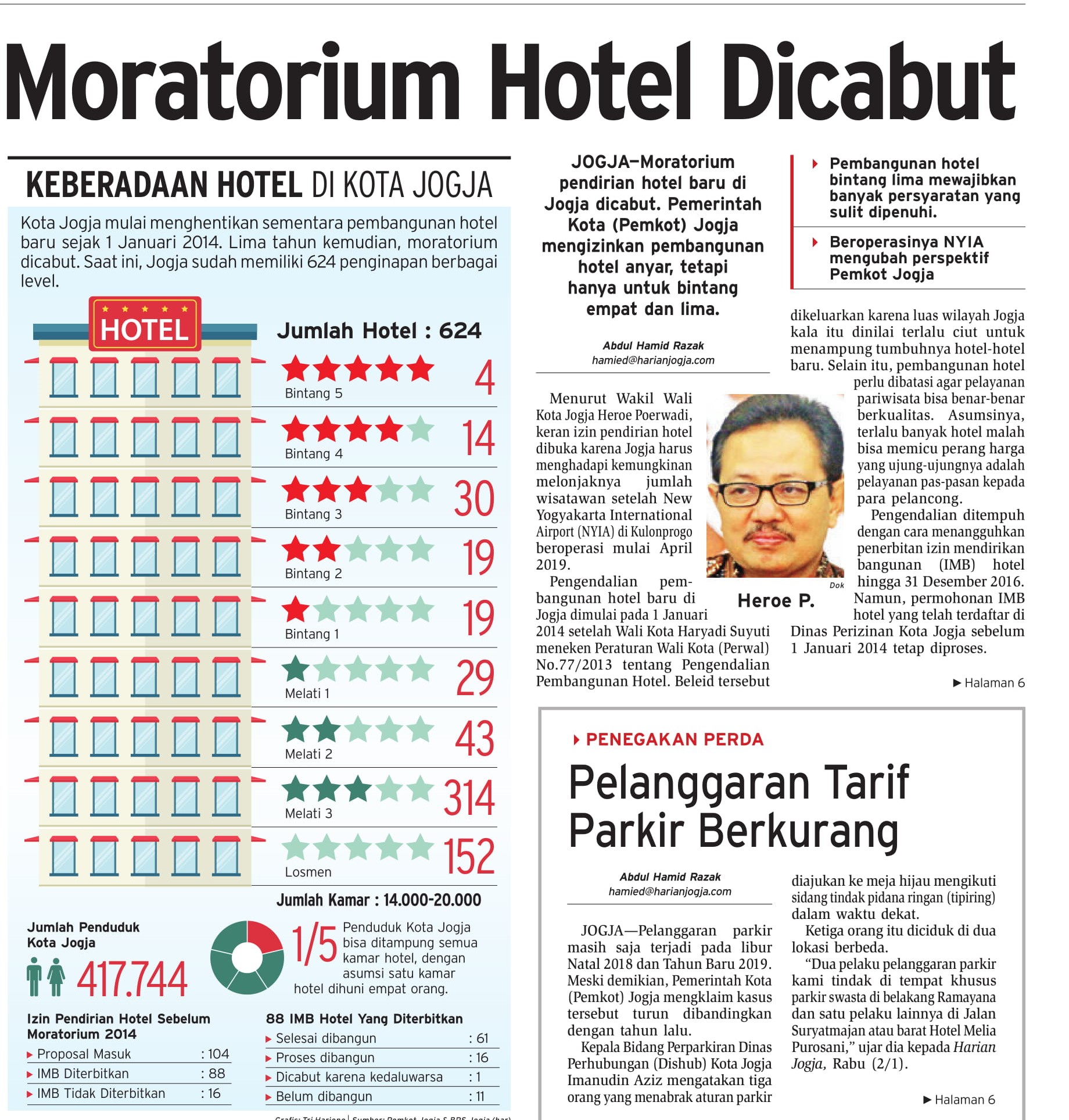 Rabu, 15 Mei 2019HARIAN JOGJA, JOGJA - Moratorium pendirian hotel baru di Jogja dicabut. Pemerintah Kota (Pemkot) Jogja mengizinkan pembangunan hotel anyar, tetapi hanya untuk bintang empat dan lima. Menurut Wakil Wali Kota [...]