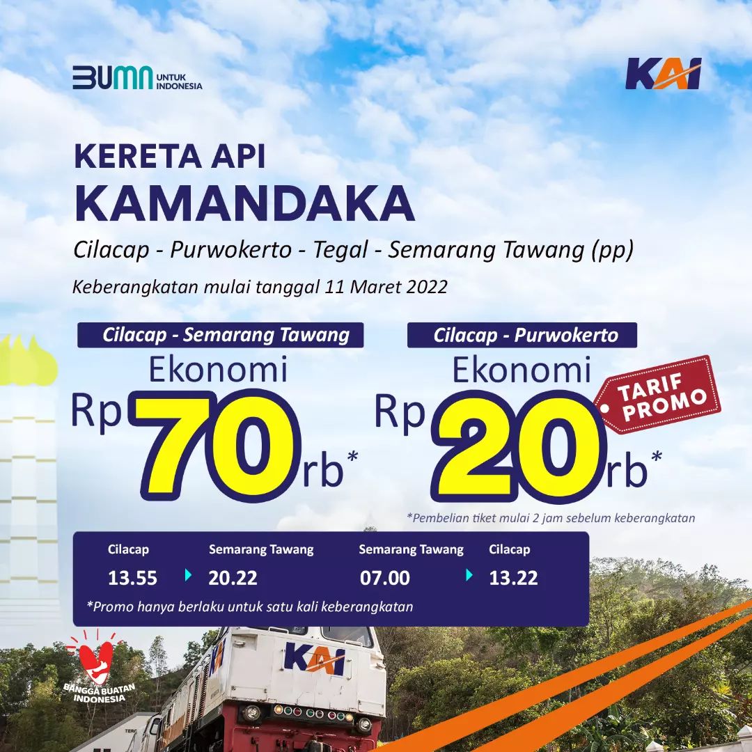 Kamis, 10 Maret 2022Perpanjangan Rute KA Kamandaka Hingga Stasiun Cilacap Setelah kemaren ada KA Joglosemarkerto relasi Cilacap - Yogyakarta (pp), ada kado spesial lagi untuk warga Kota Bercahaya ini. Sekarang, KA Kamandaka rutenya diperpanjang menjadi Cilacap - Semarang Tawang (pp), mulai 11 Maret 2022. KA Kamandaka termasuk dalam [...]