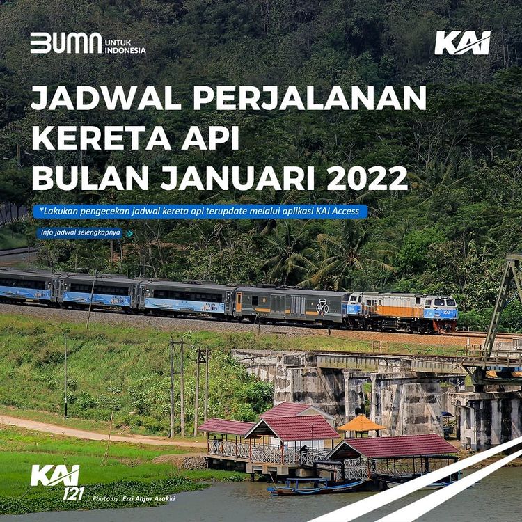 Minggu, 9 Januari 2022Sudah siap buat #NaikKeretaLagi di tahun 2022? Railmin kasih tau jadwal KA yang beroperasi di bulan Januari ini ya, #SahabatKAI. Jadwal KA yang terupdate, juga bisa kalian cek melalui aplikasi KAI Access. Railmin ingatkan lagi persyaratan naik KA ya. Sebelum naik KA, pastikan sudah divaksin minimal dosis pertama [...]