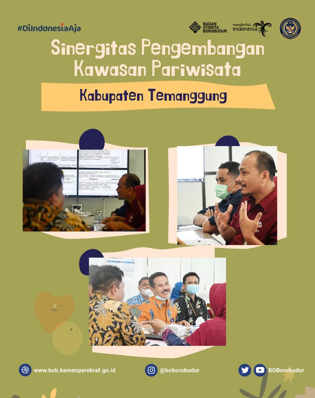 Sabtu, 8 Januari 2022BOB – Temanggung, Sesuai Instruksi Menteri Pariwisata dan Ekonomi Kreatif/Badan Pariwisata dan Ekonomi Kreatif Sandiaga Salahuddin Uno dengan arahan Badan Otorita Borobudur yang berada dalam satuan kerja Kemenparekraf yaitu menjalin sinergi dengan pemerintah daerah untuk mendorong pemerintah daerah melakukan identifikasi berbagai potensi pariwisata dan ekonomi [...]