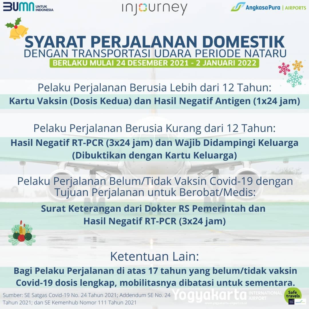 Sabtu, 25 Desember 2021Sesuai Addendum SE Nomor 24 Tahun 2021 tentang Pengaturan Aktivitas dan Mobilitas Masyarakat Selama Periode Natal 2021 dan Tahun Baru 2022 dalam Masa Pandemi Covid-19 serta SE Kementerian Perhubungan No. 111 Tahun 2021, terdapat beberapa ketentuan yang harus Sahabat patuhi untuk dapat melakukan perjalanan dengan [...]