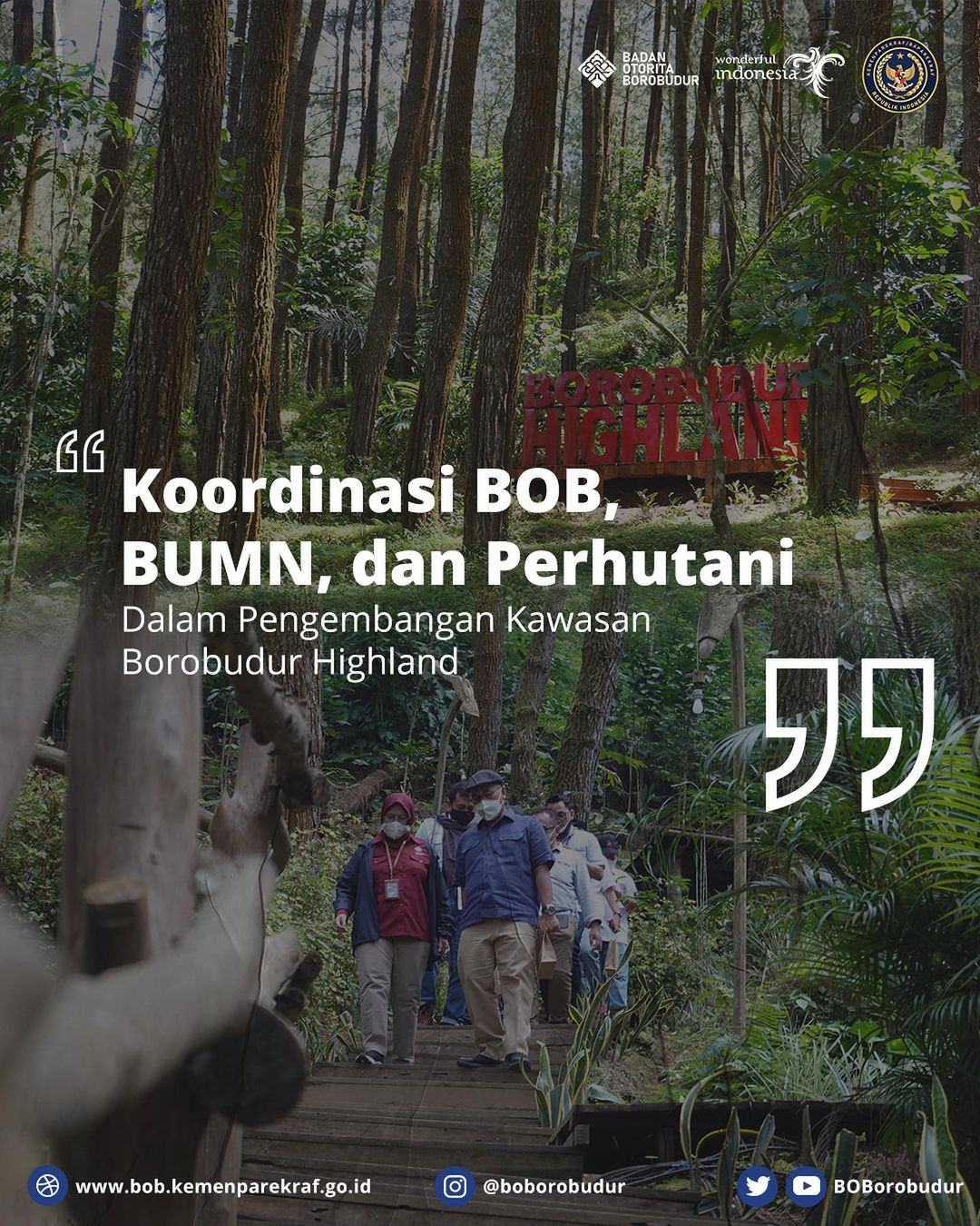 Jumat, 17 September 2021BOB – Purworejo (16/9) Direktur Utama BOB Indah Juanita didampingi Direktur Industri Pariwisata dan Kelembagaan, Bisma Jatmika dan Direktur Destinasi, Agustin Peranginangin menyambut hangat kunjungan kerja tim BUMN dan Perhutani di Deloano Glamping Kawasan Borobudur Highland. Pada kesempatan ini Beliau menjelaskan tentang tugas dan fungsi [...]